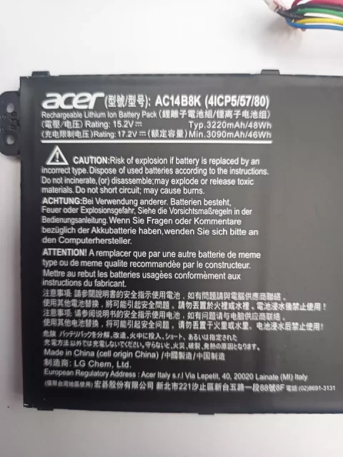 - Li-ion (Lithium-ion): Đây là loại pin phổ biến nhất trên các dòng laptop Acer. Pin Li-ion có trọng lượng nhẹ, dung lượng cao, và tuổi thọ lâu dài.